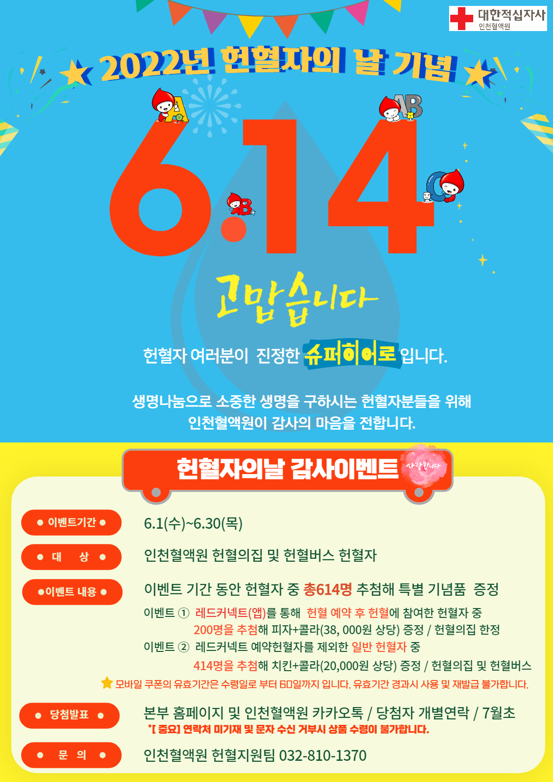 2022년 헌혈자의날 인천혈액원 이벤트 안내(6.1~6.30)