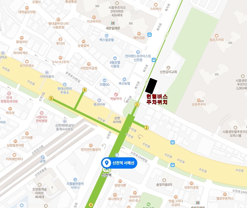가. 신천역(서해선) 1번출구 : 신천감리교회 주차장(무료 주차 가능)