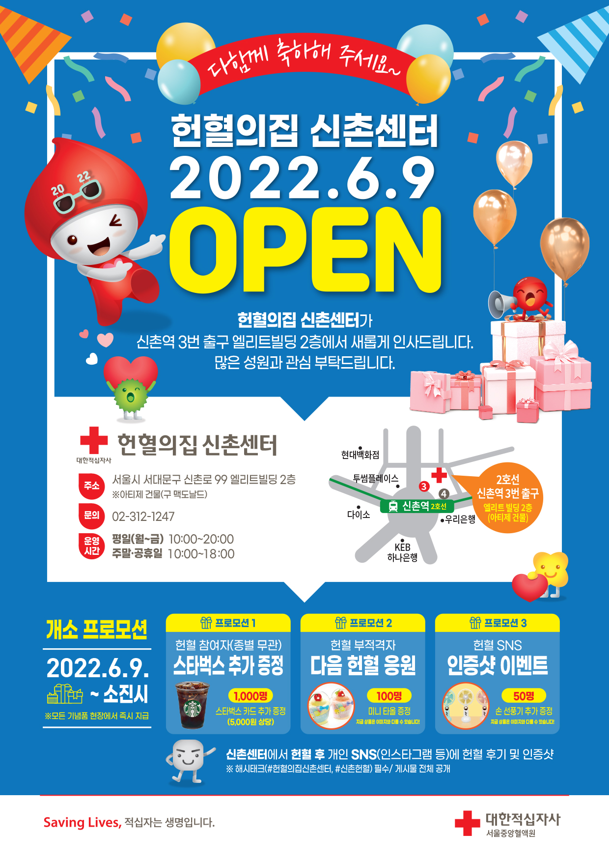 헌혈의집 신촌센터 이전 개소 및 개소 프로모션 안내