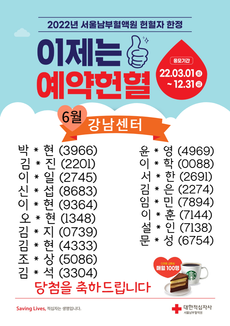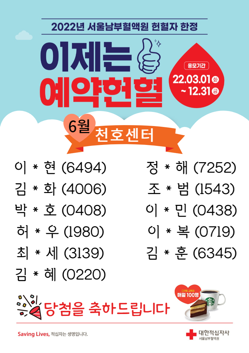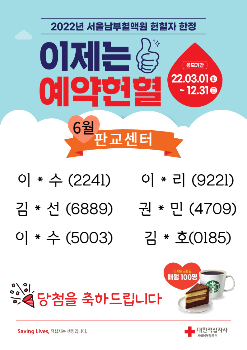 항상 서울남부혈액원과 함께 해주시는 헌혈자님 감사드립니다