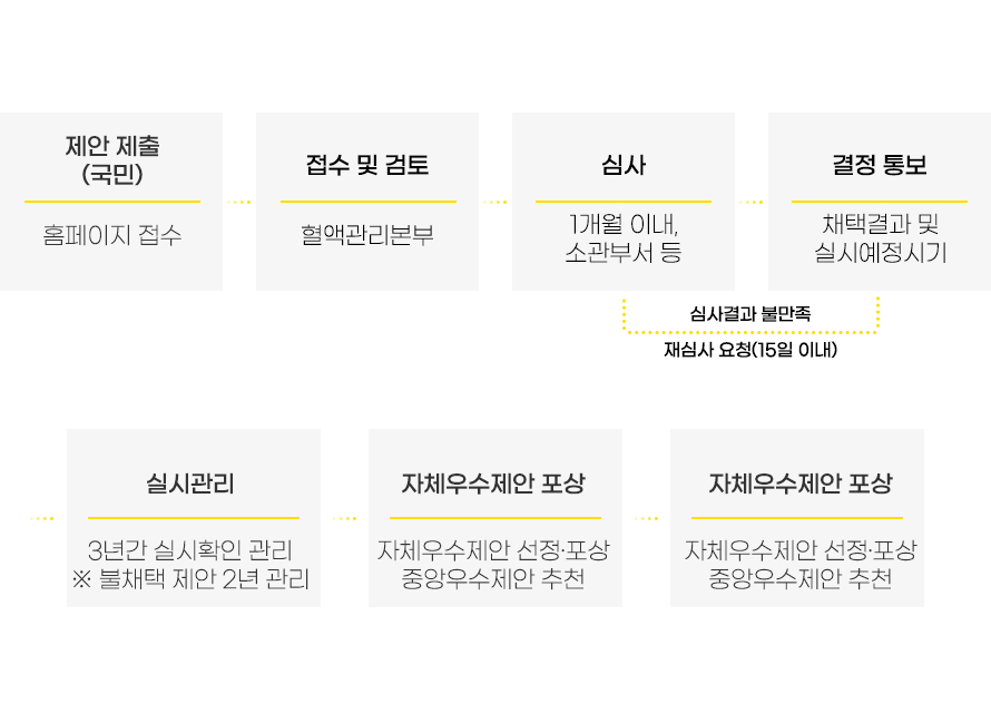 - 국민제안은 2022년까지 임시적으로 혈액관리본부 홈페이지 [고객의소리]를 통해 접수하고,