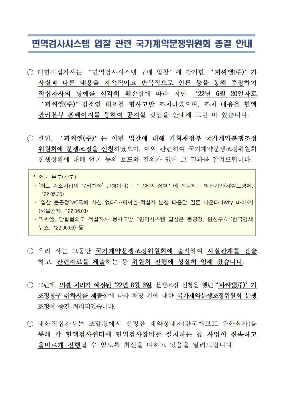 면역검사시스템 입찰 관련 국가계약분쟁위원회 종결 안내